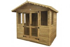 The shed summerhouse is an apex roofed summerhouse that has 1 door as standard. This summerhouse is pressure treated in tanalised green.